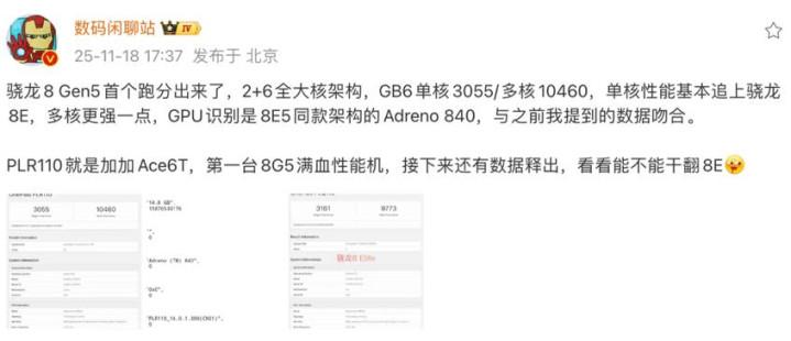 有爆料说它的跑分能和骁龙 8 Elite 互有胜负,这对一颗定位“旗舰补位”的芯片来说,已经非常不讲武德了。