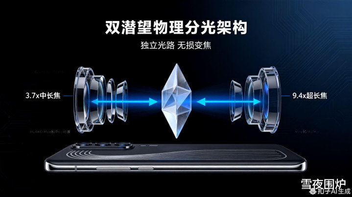 Mate80 Pro Max/RS版搭载独立运作的 4800万像素+5000万像素双潜望长焦镜头,通过物理分光实现中长焦(3.7x)与超长焦(9.4x)双焦段覆盖,彻底解决传统潜望镜焦段断层问题。